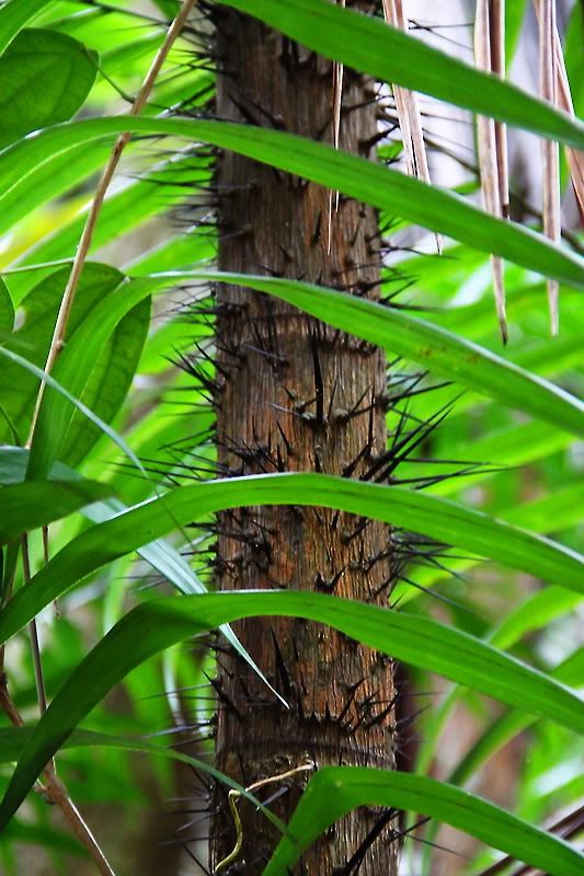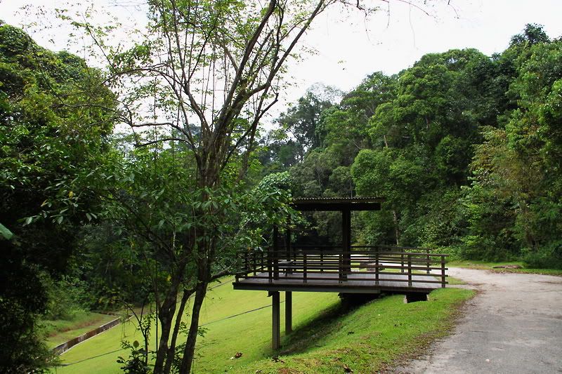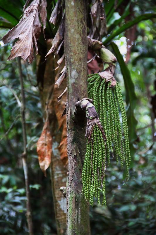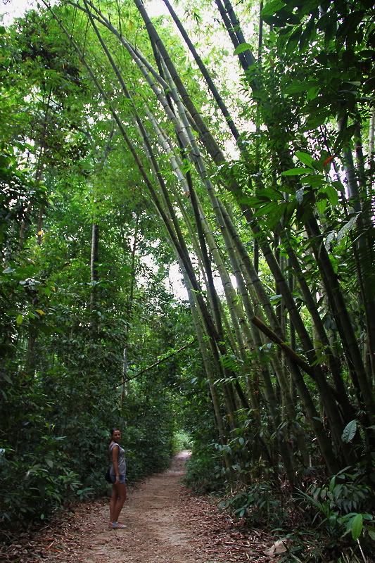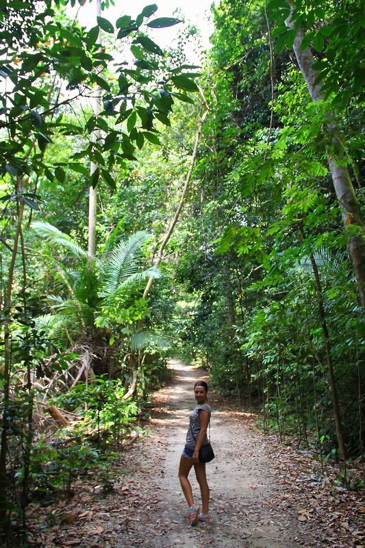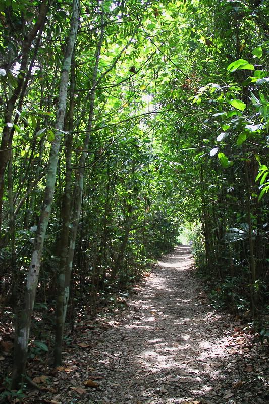 25. Такие беседки постоянно встречаются на пути: и от дождя укрыться, и от солнца, и отдохнуть. Солнце, кстати, практически не докучает, потому что высокие деревья скрывают нас от него. Хотя нам повезло прогуливаться там в облачный день. Но вот что утомляет, так это сильная влажность - при активной ходьбе как минимум майка обязательно будет мокрой. И, конечно, надо заранее запастись водой, купить ее по пути не получится, а пить хочется много.