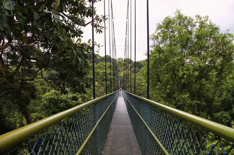 Несмотря на небольшие размеры Сингапура и жуткую дороговизну его территорий, в центре города-государства есть чудесные места, где на километры простираются настоящие тропические джунгли. Один из них — Центральный природный заповедник, он самый большой в Сингапуре. 2000 гектаров природной заповедной зоны окружают три парка, вот в одном из них мы и побывали — в парке МакРитчи. Это живой, наполненный первозданным шармом заповедный парк, расположенный вокруг водоема. Вся территория парка опоясана туристическими тропинками, которые представляют из себя брусчатые настилы вокруг водоемов парка и многокилометровые пешеходные треки. А в самой глубине парка прячется Tree Top Walk — 250-метровый в длину пешеходный мост на высоте 25 метров над землей — то есть почти на уровне верхушек деревьев.