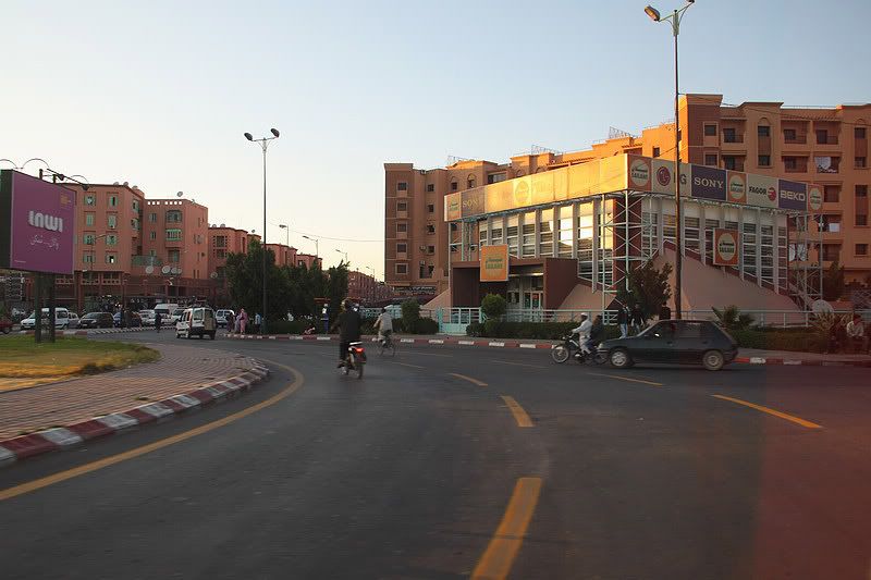 11. Наконец въезжаем в Марракеш. Сразу бросаются в глаза вполне современные здания, зеленые бульвары и марокканцы в длинных светлых одеждах на двухколесном транспорте.