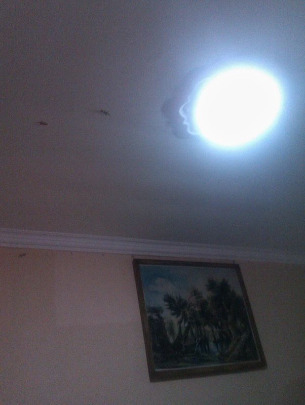 Плохо видно, но все же. Два гекона на потолке, один на стене и один на лампе, отсвечивает, не видно. остальные гекконы разбежались после моей предыдущей попытки )))