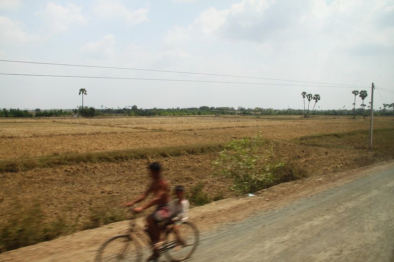 в Камбодже очень милые рисовые поля до горизонта и деревушки с домиками на очень высоких сваях. зато дороги местами просто ужас.