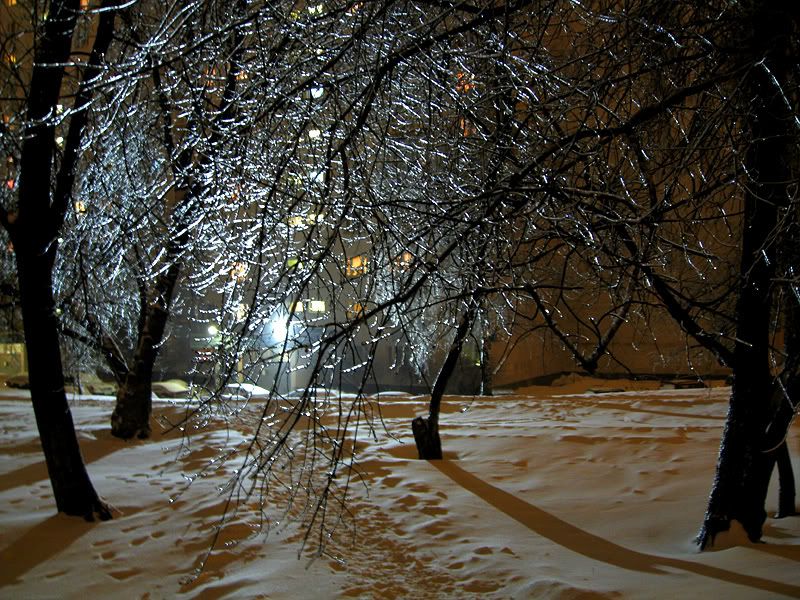 а за окном тем временем земля покрылась мягким пушистым снегом, а ветки на деревьях — льдом, красиво и очень по-новогоднему: