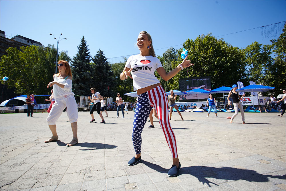 Создатели и организаторы Велохоры™ затеяли и успешно провели в это воскресенье танцы-шманцы-фест невиданных доселе масштабов. Как ни странно, но танцевальный марафон, начавшийся в 10 утра и закончившийся в 11 вечера, каким-то образом получилось сделать интересным на всём его протяжении. То есть, даже в самую спеку часть народа упоённо скакала, а другая его часть в зрелище расслабленно втыкала, возлегая на подушках под тентами и попивая халявную водичку от генерального спонсора. Всё вообще было продумано впечатляюще, начиная с холодильников с бесплатной водой, расставленных на каждом шагу, продолжая трейлером с закусками на входе (надо запомнить, у них вообще весь хавчик оказался очень качественным), и заканчивая тубзиками в дальнем углу. Я влил в себя и испарил литров пять, не меньше, по такой жаре по-другому никак. Глядя на все эти движения, какбе проникаешься миллиардом текущих вопросов, связанных с проектом такого масштаба. Я всего-то день побегал, а потом два дня в себя приходил, а они и до, и во время, и даже ночь после. Уважеск. Хорошо, что в городе есть движения подобного рода и люди их организовывающие. 1 ( + 73 шт., 12,9 мб )