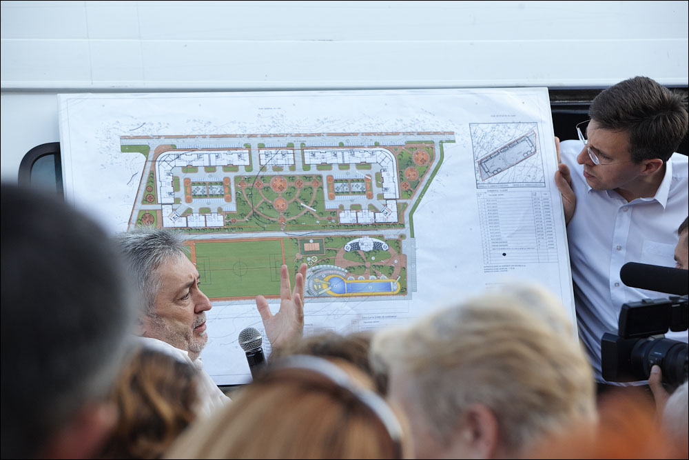 Июль 2013-го, организовывается выход власти в народ, Киртоака вооружается микрофоном, картой-схемой будущей застройки, включает режим «пиздобол-нон-стоп» и три часа лечит толпу местных картинами перспектив Нью-Васюков вместо рыпэ ку буруянэ. С праведным огнём в глазах банда шайка команда эти мудаки убеждают людей, что ну да, стадион приватизирован незаконно, но выбора нет (!) и единственный (!!) разумный (!) путь в этой ситуации — выделить застройщику дополнительный (!!!) участок, на половине (!) которого, хер с вами, будет построен альтернативный стадион — типа в компенсацию. Киртоака называет эту демагогическую хуйню компромиссом и стучит себя коленом в грудь, что ни один бульдозер не въедет на стадион, пока не будет построена его замена рядом.