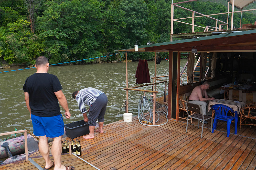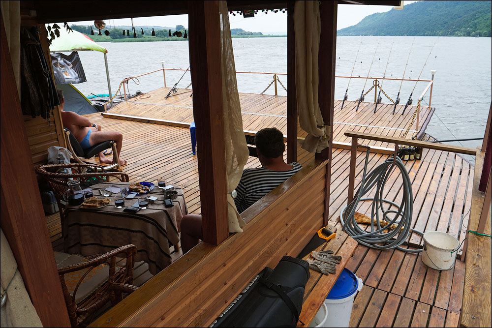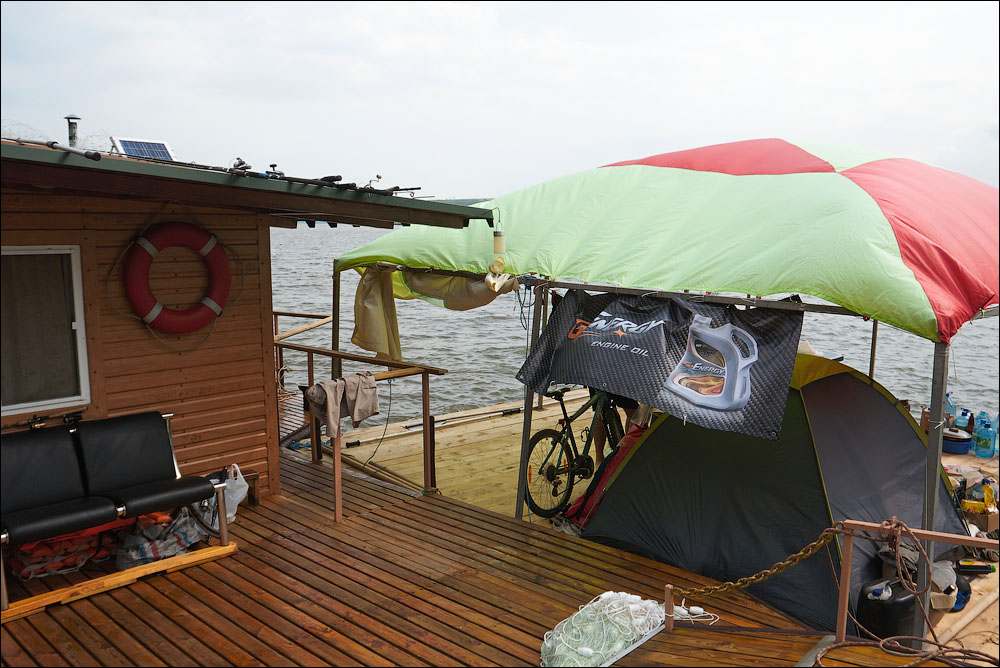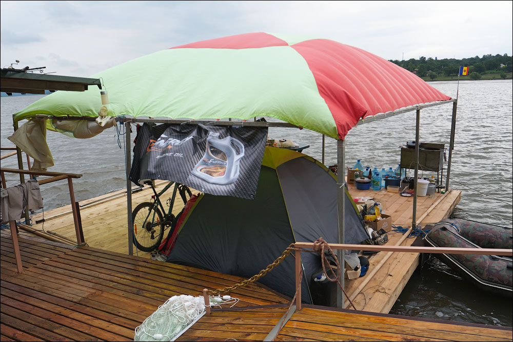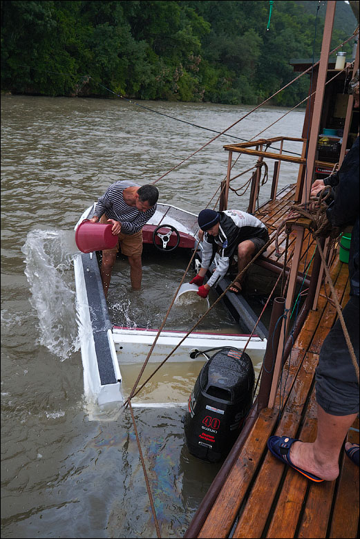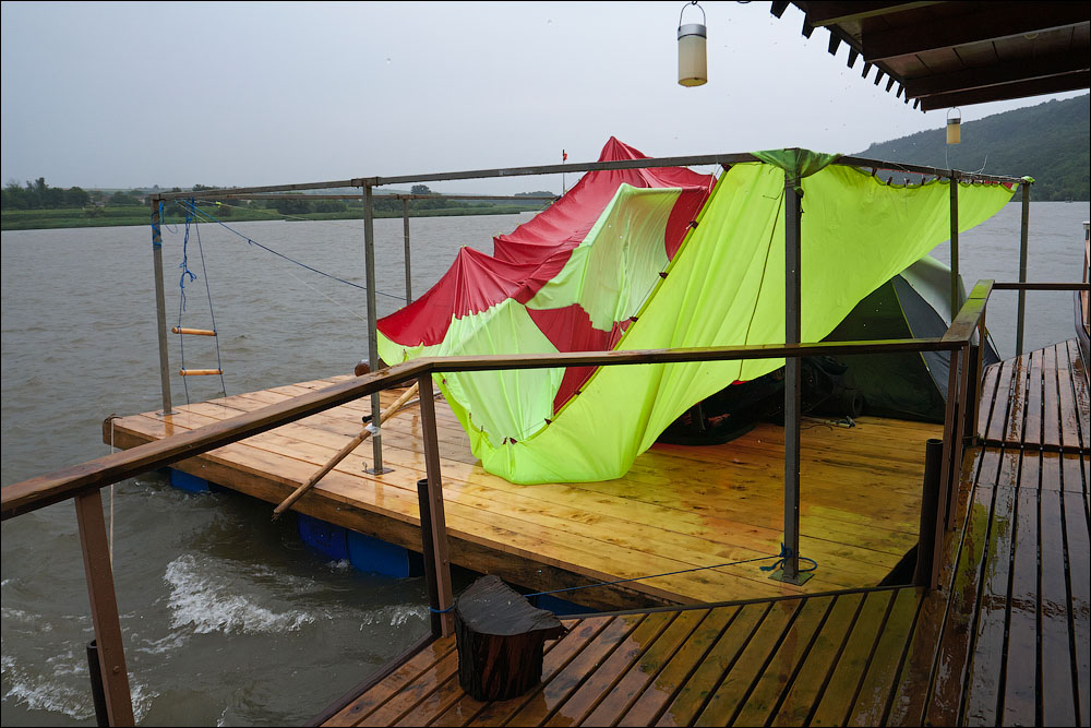 Плот-2013 ч.5 Предыдущая четвёртая часть *** А поутру мы прошли всего 3,5 километра и с размаху пришвартовались у нашей конечной цели — благоустроенному понтону посреди реки. Где нас уже ждали. 390 ![]() 391 ![]() Понтон стоит на сильном течении, глубина здесь 12 метров. Место непростое, поэтому только общая информация. 392 ![]() Половина девятого же, завтрак. 393 ![]() Понтон наворочен мыслимо и немыслимо. Есть всё. 394 ![]() Это не просто чёрный трос. Это шланг, усиленный тросом, ведущий к роднику на склоне, где вкопана бочка и откуда родниковая вода поступает на понтон в кран, в душ, в туалет. 395 ![]() Неподалёку стоит ещё один такой же водный домик. 396 ![]() На берегу есть прикольная пещера, но я не выбрался, а потом было не до того, сильно испортилась погода. 397 ![]() Хозяин плавсредства. 398 ![]() Знаем коды. 399 ![]() 400 ![]() 401 ![]() Жалкое подобие левой руки. 402 ![]() Капитан понтона бывший десантник, сегодня председатель ассоциации ветеранов, поэтому на понтоне много напоминаний о ВДВ. 403 ![]() Напоминание о Фудзияме. 404 ![]() Временно исполняющие матросов. 405 ![]() Боб пробует разогнать тучи. 406 ![]() Сладкий сон рыбака. 407 ![]() 408 ![]() 409 ![]() 410 ![]() 411 ![]() Вот так выглядели наши проблемы с дождём. Тент, собака, водонепроницаемый. 412 ![]() Приехавший на день Аркадий восстанавливает силы. 413 ![]() 414 ![]() Они ему в этот день очень понадобились. Машину он оставил накануне выше по течению, чтобы потом вернуться на велосипеде. Дико устал и намотал на колёса всю грязь Резинского района. 415 ![]() 416 ![]() Форпост. 417 ![]() Мы к тому времени уже от сплава несколько утомились, это мешало нам прочувствовать всю прелесть видов. Да и погода. 418 ![]() 419 ![]() 420 ![]() 421 ![]() Лодки привязаны. 422 ![]() 423 ![]() 424 ![]() 425 ![]() 426 ![]() 427 ![]() 428 ![]() 429 ![]() 430 ![]() 431 ![]() 432 ![]() Вот эта железная лепёшка, это нечто. Её варганят из бороны, некоторые заваривают крепёжное отверстие в центре, другие вставляют туда регулируемый штырь и получают фантастически эффективный прибор для жарки. 433 ![]() Толщина способствует равномерному нагреву. 434 ![]() Он в курсе. 435 ![]() 436 ![]() Оф, чайник ещё цел. Заскучав, решил принесть пользу и благодать на понтон. Обнаружил толстый слой накипи в чайнике и в пицот приёмов выпарил её уксусом. И вот когда чайник уже сверкал девственным днищем и оставалось только последний раз сполоснуть его в реке, я как последний баран роняю крышку и целую секунду наблюдаю, как она катится по палубе. Когда крышка булькает, я булькаю следом и даже попадаю в неё рукой, но поздно. Так было неловко, страсть. 437 ![]() 438 ![]() Взопрела, бедняжка. 439 ![]() 440 ![]() Герметичный мешок для бебихов, хорошая штука. 441 ![]() И снова мы получаем бонусом тайфун. Оказывается, в конце июня в Молдавии сезон катаклизмов. 442 ![]() И небо упало на 443 ![]() 444 ![]() Снова смонтировали сложное водоупорное устройство. 445 ![]() А так оно выглядело поутру. Тент, впрочем, не порвался. Но это была не вся печаль. 446 ![]() Дождём залило лодку и не утонула она лишь потому, что была надёжно привязана. 447 ![]() Зацепили, вытянули. 448 ![]() Промудохались, правда, часа два, очень мешало течение. 449 ![]() 450 ![]() 451 ![]() 452 ![]() Но одолели. 453 ![]() 454 ![]() 455 ![]() 456 ![]() Эх. 457 ![]() Зальём печали и радости. 458 ![]() Тот ещё, дореволюционный. 459 ![]() Подарочный. 460 ![]() 461 ![]() Кровь дракона. 462 ![]() 463 ![]() Ну, хватит с нас непогоды. Прибрали вещи, упаковались. 464 ![]() Капитан, как всегда, покидает корабль последним. 465 ![]() 466 ![]() 467 ![]() Прощальный залп. 468 ![]() 469 ![]() Нас с ветерком везут километром ниже по те