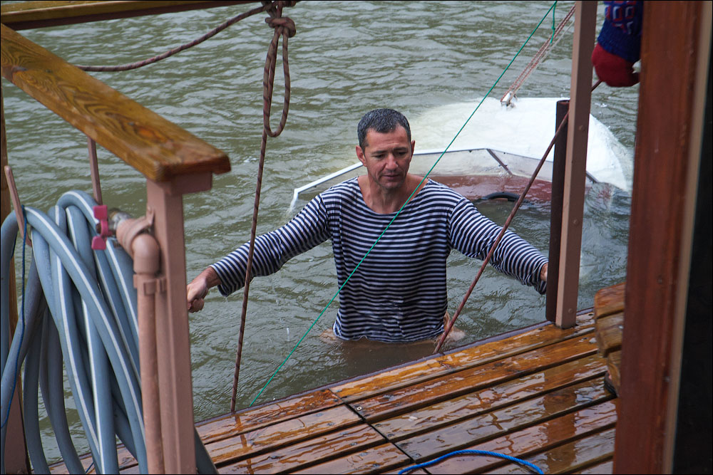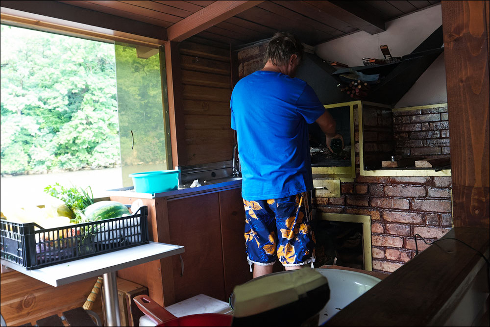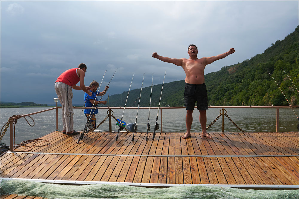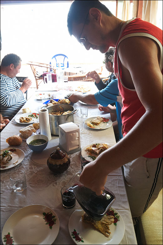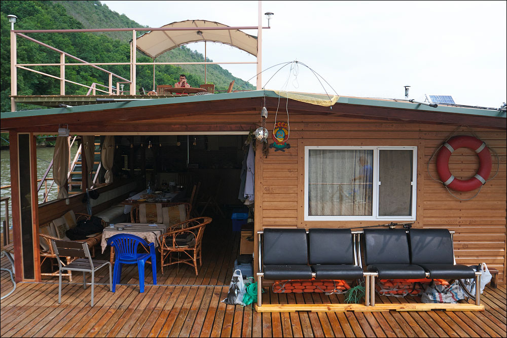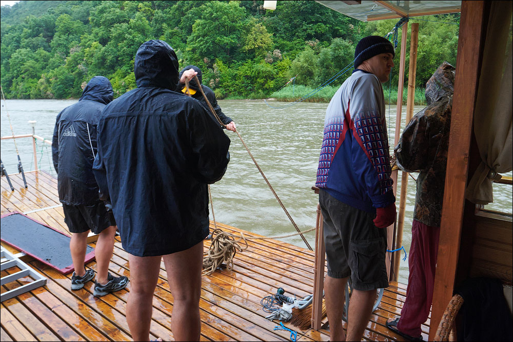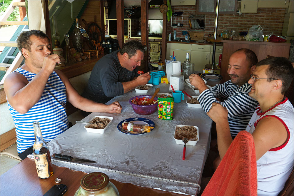 Плот-2013 ч.5 Предыдущая четвёртая часть *** А поутру мы прошли всего 3,5 километра и с размаху пришвартовались у нашей конечной цели — благоустроенному понтону посреди реки. Где нас уже ждали. 390 ![]() 391 ![]() Понтон стоит на сильном течении, глубина здесь 12 метров. Место непростое, поэтому только общая информация. 392 ![]() Половина девятого же, завтрак. 393 ![]() Понтон наворочен мыслимо и немыслимо. Есть всё. 394 ![]() Это не просто чёрный трос. Это шланг, усиленный тросом, ведущий к роднику на склоне, где вкопана бочка и откуда родниковая вода поступает на понтон в кран, в душ, в туалет. 395 ![]() Неподалёку стоит ещё один такой же водный домик. 396 ![]() На берегу есть прикольная пещера, но я не выбрался, а потом было не до того, сильно испортилась погода. 397 ![]() Хозяин плавсредства. 398 ![]() Знаем коды. 399 ![]() 400 ![]() 401 ![]() Жалкое подобие левой руки. 402 ![]() Капитан понтона бывший десантник, сегодня председатель ассоциации ветеранов, поэтому на понтоне много напоминаний о ВДВ. 403 ![]() Напоминание о Фудзияме. 404 ![]() Временно исполняющие матросов. 405 ![]() Боб пробует разогнать тучи. 406 ![]() Сладкий сон рыбака. 407 ![]() 408 ![]() 409 ![]() 410 ![]() 411 ![]() Вот так выглядели наши проблемы с дождём. Тент, собака, водонепроницаемый. 412 ![]() Приехавший на день Аркадий восстанавливает силы. 413 ![]() 414 ![]() Они ему в этот день очень понадобились. Машину он оставил накануне выше по течению, чтобы потом вернуться на велосипеде. Дико устал и намотал на колёса всю грязь Резинского района. 415 ![]() 416 ![]() Форпост. 417 ![]() Мы к тому времени уже от сплава несколько утомились, это мешало нам прочувствовать всю прелесть видов. Да и погода. 418 ![]() 419 ![]() 420 ![]() 421 ![]() Лодки привязаны. 422 ![]() 423 ![]() 424 ![]() 425 ![]() 426 ![]() 427 ![]() 428 ![]() 429 ![]() 430 ![]() 431 ![]() 432 ![]() Вот эта железная лепёшка, это нечто. Её варганят из бороны, некоторые заваривают крепёжное отверстие в центре, другие вставляют туда регулируемый штырь и получают фантастически эффективный прибор для жарки. 433 ![]() Толщина способствует равномерному нагреву. 434 ![]() Он в курсе. 435 ![]() 436 ![]() Оф, чайник ещё цел. Заскучав, решил принесть пользу и благодать на понтон. Обнаружил толстый слой накипи в чайнике и в пицот приёмов выпарил её уксусом. И вот когда чайник уже сверкал девственным днищем и оставалось только последний раз сполоснуть его в реке, я как последний баран роняю крышку и целую секунду наблюдаю, как она катится по палубе. Когда крышка булькает, я булькаю следом и даже попадаю в неё рукой, но поздно. Так было неловко, страсть. 437 ![]() 438 ![]() Взопрела, бедняжка. 439 ![]() 440 ![]() Герметичный мешок для бебихов, хорошая штука. 441 ![]() И снова мы получаем бонусом тайфун. Оказывается, в конце июня в Молдавии сезон катаклизмов. 442 ![]() И небо упало на 443 ![]() 444 ![]() Снова смонтировали сложное водоупорное устройство. 445 ![]() А так оно выглядело поутру. Тент, впрочем, не порвался. Но это была не вся печаль. 446 ![]() Дождём залило лодку и не утонула она лишь потому, что была надёжно привязана. 447 ![]() Зацепили, вытянули. 448 ![]() Промудохались, правда, часа два, очень мешало течение. 449 ![]() 450 ![]() 451 ![]() 452 ![]() Но одолели. 453 ![]() 454 ![]() 455 ![]() 456 ![]() Эх. 457 ![]() Зальём печали и радости. 458 ![]() Тот ещё, дореволюционный. 459 ![]() Подарочный. 460 ![]() 461 ![]() Кровь дракона. 462 ![]() 463 ![]() Ну, хватит с нас непогоды. Прибрали вещи, упаковались. 464 ![]() Капитан, как всегда, покидает корабль последним. 465 ![]() 466 ![]() 467 ![]() Прощальный залп. 468 ![]() 469 ![]() Нас с ветерком везут километром ниже по те
