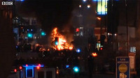 На кадрах, которые передавал телеканал Би-би-си, было видно, что на улице происходили многочисленные стычки между полицейскими и протестующими.