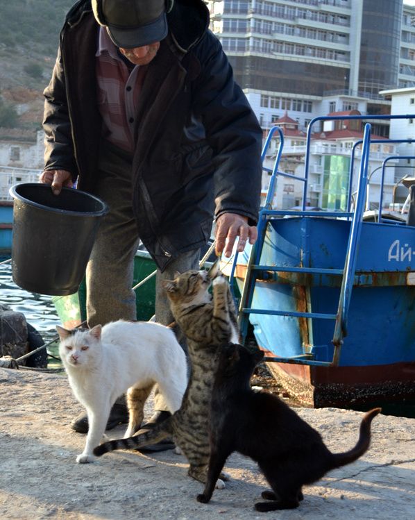 и бегают всегда охочие до свежей рыбки балаклавские коты: