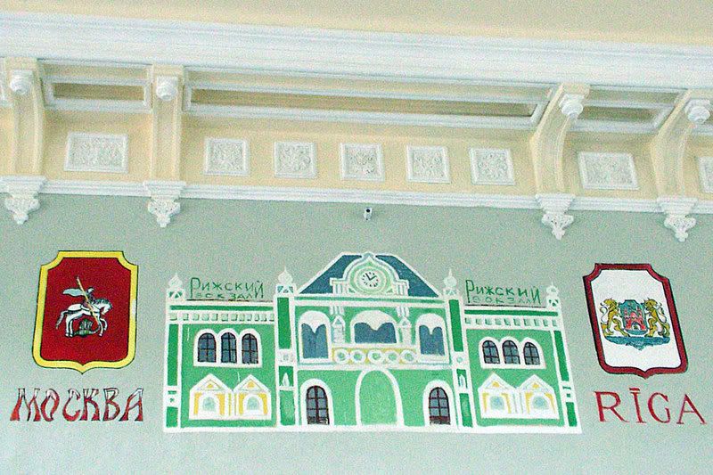 Я был на Рижском вокзале единственный раз в жизни (год или полгода назад) и не заметил этой росписи. Конечно, такая наивность в столичном вокзале шокирует, но имхо именно наивности тут 90%, а всяких отрицательных оттенков всего лишь 10.