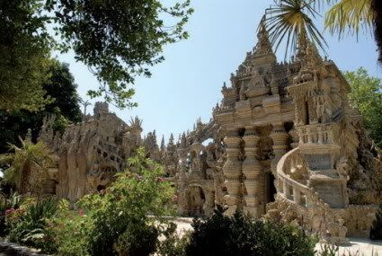 шеваль  в 43 года он вдруг начал строить какой-то странный, ни на что не похожий дворец. На самом деле это было не вдруг, почтальону и раньше приходили "видения" какого-то диковинного сооружения. Строил он дворец 33 года, поначалу не зная строительного ремесла, без чьей бы то ни было помощи. Возвращаясь со своего 32-километрового почтальонского маршрута, привозил в тачке по 40 килограммов камней. уникальность состоит в том, что дворец размерами 26х14х12 м3 не имел жилых помещений, будучи абсолютно не функциональным, но изначально концептуальным. Одной из тематических концепций дворца было объединение культур разных времен и народов. Архитектурная композиция, скульптурные формы, декор дворца переполнены элементами древнеегипетской, античной, индийской, исламской культуры, а также культуры европейского средневековья. На всех стенах дворца надписи - изречения Христа, Будды, собственные мысли Шеваля. отсюдак.богемская упоминает о виденной ею в 70-х башне из человеческих тел, выстроенной неким арминаком в окрестностях баку -- нынешняя судьба ее неизвестна. интернет мне тайну не раскрыл. попутно. в казани есть храм всех религий. |
