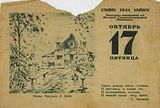 александр введенский в отрывном (?) календаре 1941 года ( большие )К 1931 почти все ОБЭРИУты были арестованы. Введенский был снят с поезда 10 декабря. Им инкриминировалось, что они отвлекают людей от задач строительства социализма своими "заумными стихами". Введенского обвиняли во "вредительстве в области детской литературы". 21 марта 1932 был освобожден, но лишен прав проживания в 16 пунктах СССР сроком на 3 года. Жил в Курске, затем переехал в Вологду, а завершил ссылку в Борисоглебске в 1933. По возвращении в Ленинград вступает в Союз писателей. В 1933 - 34 написаны лучшие стихи Введенского - "Мне жалко, что я не зверь", "Приглашение меня подумать", "Четыре описания" и др. В 1936, будучи в Харькове, женится и уезжает с женой на Кавказ, потом возвращается в Харьков, где живет, иногда наезжая в обе столицы. Работает в детской литературе, зарабатывает сочинением клоунских реприз, куплетов, миниатюр. В 1939 пишет пьесу "Елка у Ивановых". Незадолго до войны писал пьесу для кукольного театра С.Образцова. В эти годы мало выступал со своими стихами. Последние произведения - пьесы "Потец", "Где. Когда". В 1941 немцы приближались к Харькову, и семья должна была эвакуироваться. Поезд был переполнен, поэтому было решено остаться и ждать следующего, который должен был идти через несколько дней. Однако дальше эвакуации не было. Через два дня Введенский был арестован, обвинен по "контрреволюционной" статье 54 - 10. Точная дата смерти неизвестна. Позднее в реабилитационном документе стояла дата - 20 декабря 1941. Из книги: Русские писатели и поэты. Краткий биографический словарь. М,2000. | 1:38p |