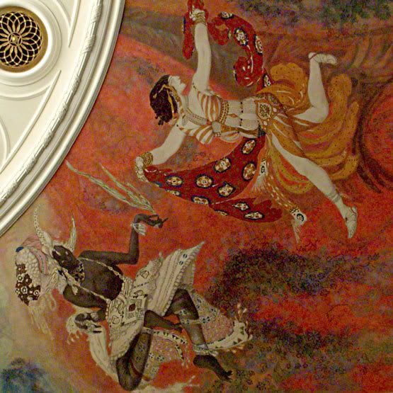 еще о большом ![]() пульт с Красными Кнопками и Секретным Прямым Телефоном Наверх в прошлый раз недосказал про "золотого петушка": это же опера с элементами балета: петушок и двойники салтана и шемаханской царицы -- профессиональные танцоры, и хореограф с восточной фамилией, ибо танцы арабские. поют другие люди, петушок так вообще из кулисы, слышно плохо. может, ее надо было в яму поставить? вот петушок-танцор, нерезкий ![]() при некотором воображении можно составить представление о костюмах ![]() а на потолке среди росписей по мотивам бакста-шагала-не знаю кого еще... ![]() ...мелкие животинки ![]() ![]() ![]() ![]() ![]() для тех, кто тут недавно: мой давний пост про занавес "россия -- ссср" и другой декор в старом здании, которого мы уже наверное никогда не увидим. |