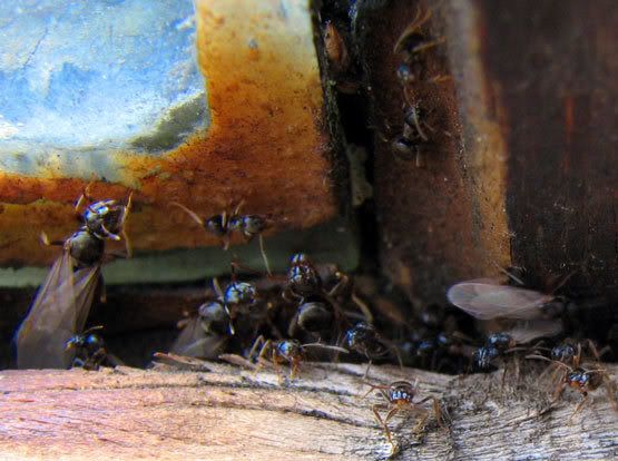 ф: муравенство ![]() первый раз видел муравейник изнутри. муравьи думали, что это они внутри, что их никто не видит, что наружа -- по ту сторону стекла. рабочие учуяли меня, забегали, норовили укусить в объектив. крылатые, большие и маленькие, впадали в ступор. |