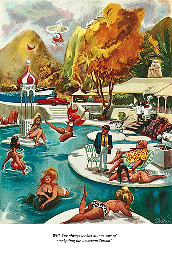 ![]() "Well, I've always looked at it as sort of stockpiling the American Dream!" | |||||