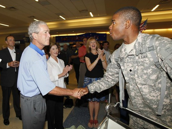 Экс-президент Буш сегодня приехал в аэропорт Далласа встречать группу военных, возвращающихся из Ирака. Военные такой встречи не ждали и Левые, кстати, повадились вспоминать Буша с некоторой теплотой – в качестве контраста со страшными нынешними правыми, на фоне которых даже такое чудовище, как Буш, может приобрести кое-какие человеческие черты. Опубликовано в Записках Часовщика. Комментировать там больше нельзя, все комментарии просьба оставлять тут. | |||||