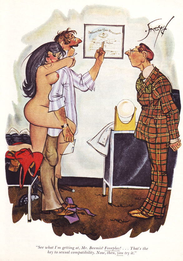 ![]() "See what I'm getting at, Mr.Beemis? Foreplay!...That's the key to sexual compatibility. Now, then, you try it." | |||||