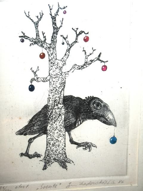 В 1986 году на вернисаже художников в Измайлово, который тогда был весёлым и демократичным, один симпатичный график (не маленький граф, а художник-офортист) из Литвы по фамилии Задонскис подарил мне картинку. Подарил просто так, после короткого, но дружеского разговора о его работах - действительно тонких и мастерских (графикой редко кто из гуляющих интересовался, народ всё больше пленялся кичевыми пейзажами и натюрмортами).