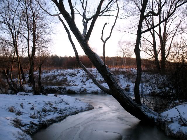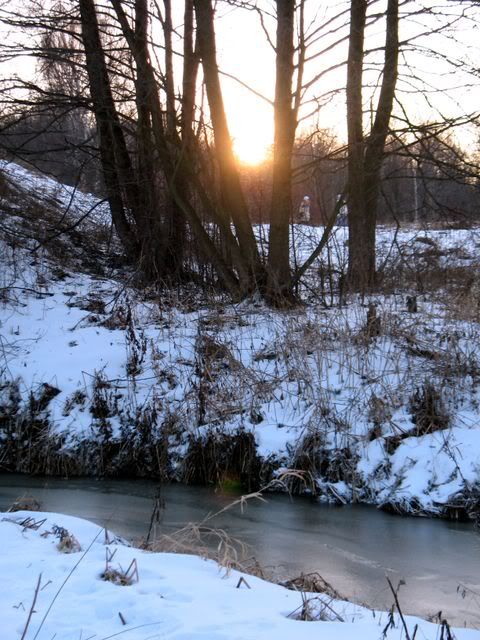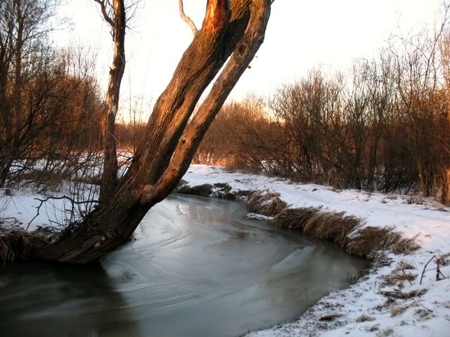 Прогулка вдоль Серебрянки В Измайловском парке замёрзла речка Серебрянка, что случается с нею не каждый год: хоть речка маленькая, течение в ней быстрое... Обычно там кормятся утки. Сейчас нет ни одной, и через пару ночей, вероятно, застынут последние очажки студенистой воды, пока еще пробивающейся через корку льда...