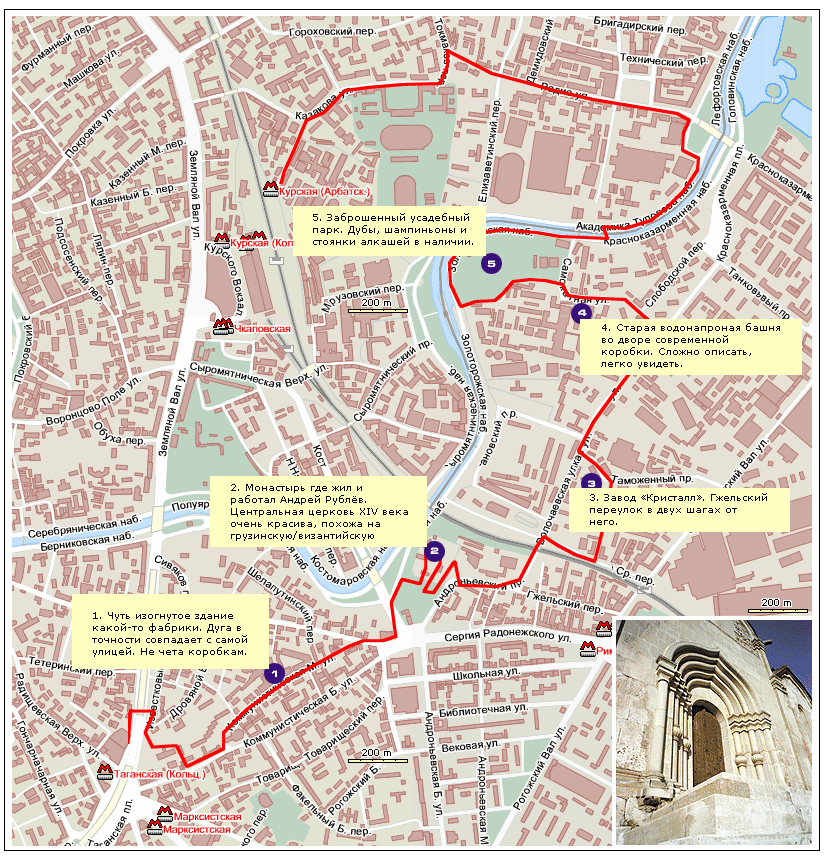 [путь] большая и малая коммунистические. К часу дня закончив "важное дело" отправились с ванечкой гулять в том же районе таганской.