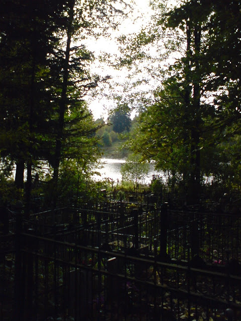 В Гребнево видели несколько картин на религиозные сюжеты, вмонтированных прямо в церковную ограду. Прекрасный примитивист. Местный, наверное. На одной из них св. Николай спасал патриарха от потопления: в пучине вод погибал корабль и патриарх во всем своем облачении тянулся из бушующих волн к руке Чудотворца. Еще удивил гребневский погост - он так сильно сползал в реку, что во время весенних разливов у некоторых мертвецов наверняка был шанс отправиться в большое путешествие. |