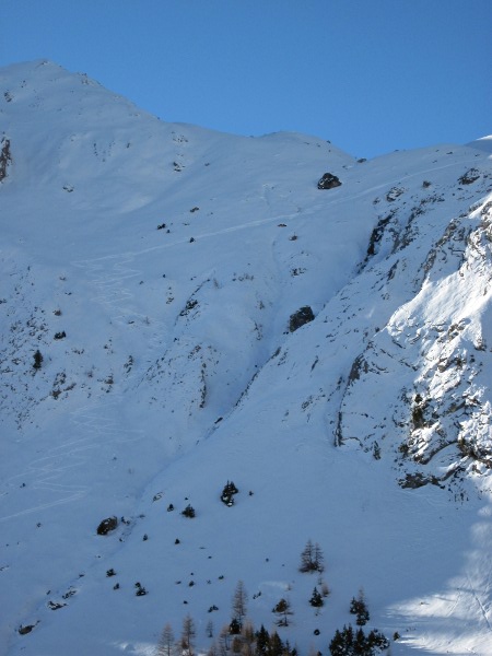ключевое место спуска (в Combe de l'A) с нашими следами: