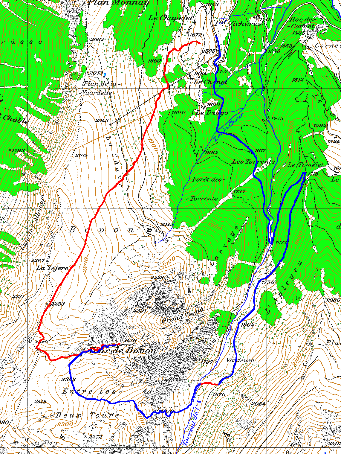 В воскресенье открыл наконец скитур-сезон: с F. и С.В. сходили на Tour de Bavon. 01.12.13: Vichères (1595) -- Tour de Bavon (2476) -- Entre les Deux Tours -- Combe de l'A -- Vichères.