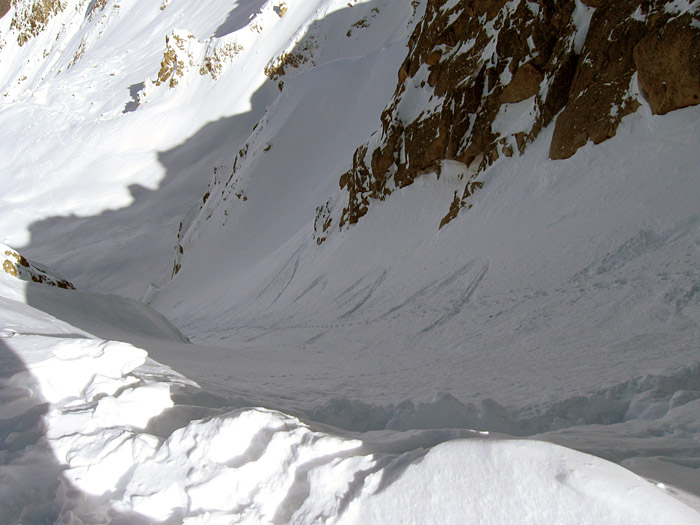 13.03.10: La Poya (1280) -- Génépi [W] (2880) и обратно (примерно так).лыжня вверх:вид на Aiguille du Tour:кулуар, ведущий вниз: