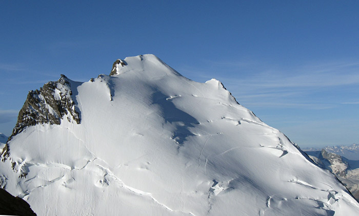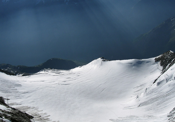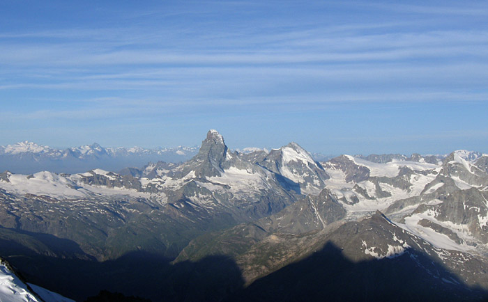 Несмотря на опаздывающие итальянские поезда и грозовые прогнозы, мы с К.Ш. успешно залезли на Nadelhorn. 11-12.07.10: Saas-Fee/Hannig (2336) - Mischabelhütte (3335) - Nadelhorn (4327) - Mischabelhütte - Saas-Fee (1803) [нормальным маршрутом]. Стартовали из избушки в 3:15, обернулись за 7 часов.
