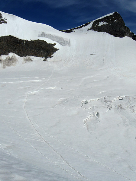 Тропа на Hohbalmgletscher не утруждает обходом трещин (мы обошли, однако):