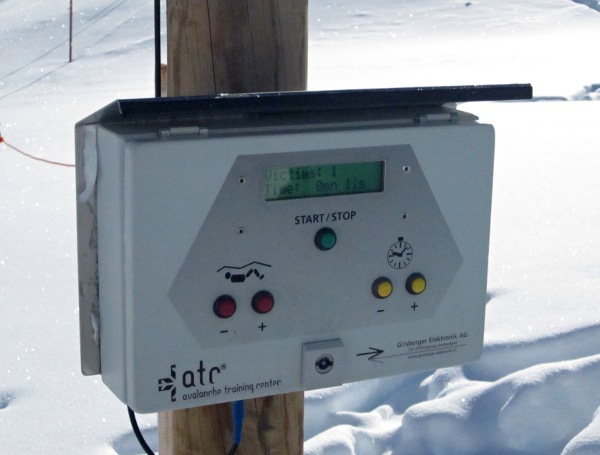 Сегодня катались с деткой и друзьями на лыжах в Zinal'е, и я наконец-то посетил avalanche training center, который там находится. Это небольшая огороженная территория, на которой заранее прикопаны несколько (кажется, 15) передающих лавинных радиомаячков. Зимой их засыпает снегом, и они используются для тренировки радиопоиска засыпанных лавиной. Установка работает в режиме самообслуживания: на входе просто стоит столб с панелью управления, на которой можно выбрать количество "жертв" и время, отводимое на поиск. После нажатия кнопки "старт" случайно включаются один или несколько маячков. В отличие от настоящего поиска в лавине, нужно ничего не выкапывать, а просто ткнуть в "жертву" лавинным зондом (тогда столб громко пищит, и радиосигнал прекращается). Поигрался в эту увлекательную игру пару раз: надеюсь, что с пользой. Бегать по глубокому снегу без лыж достаточно утомительно.