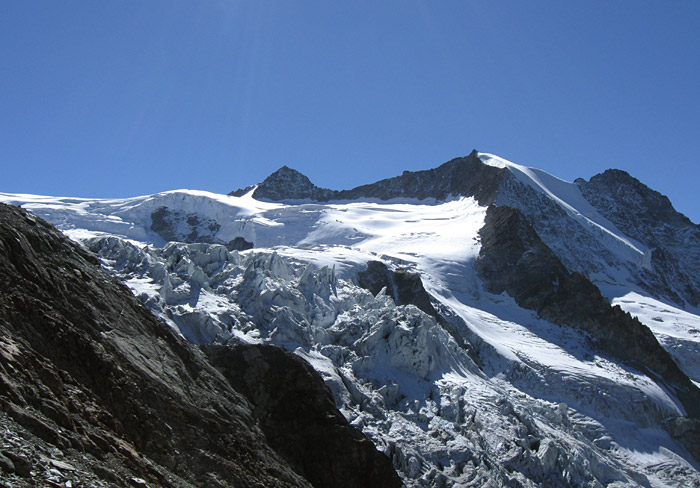 L'Evêque 14-15.07.11: Arolla (1970) -- Cabane des Vignettes (3160) -- Col de Charmotane (3037) -- L'Evêque (3716) -- Glacier du Mont Collon (3150) -- Col de l'Evêque (3382) -- Haut Glacier d'Arolla -- Arolla (примерно вот так, только со спуском вниз вместо захода в Ref. des Bouquetins). ( немножко слов и картинок ) |