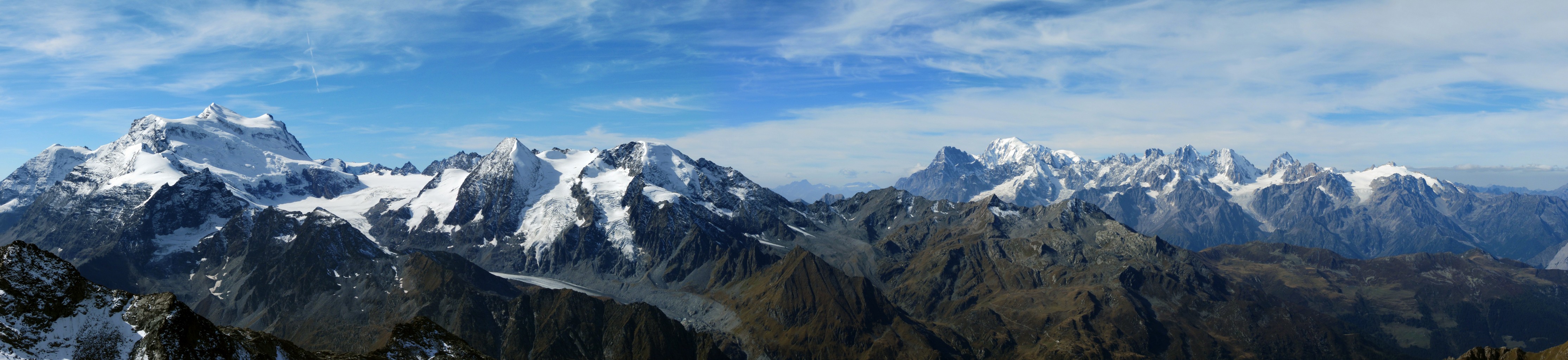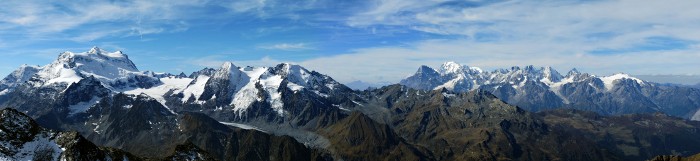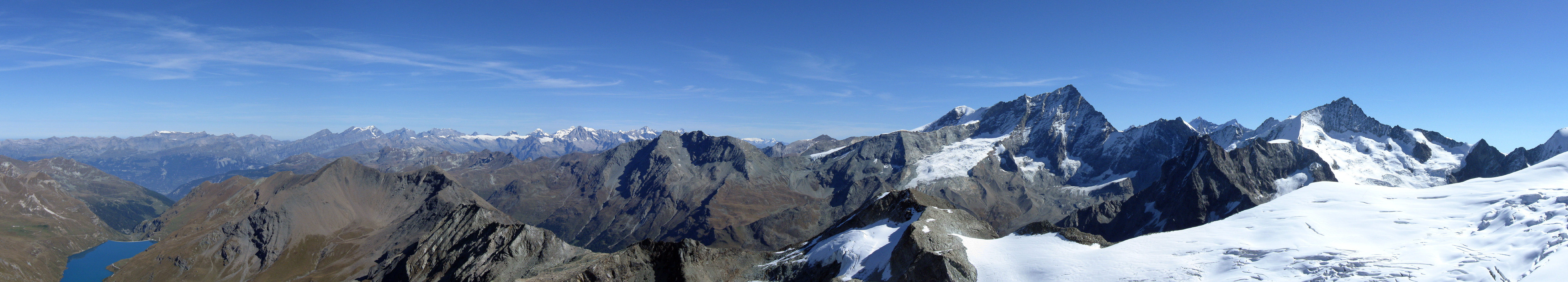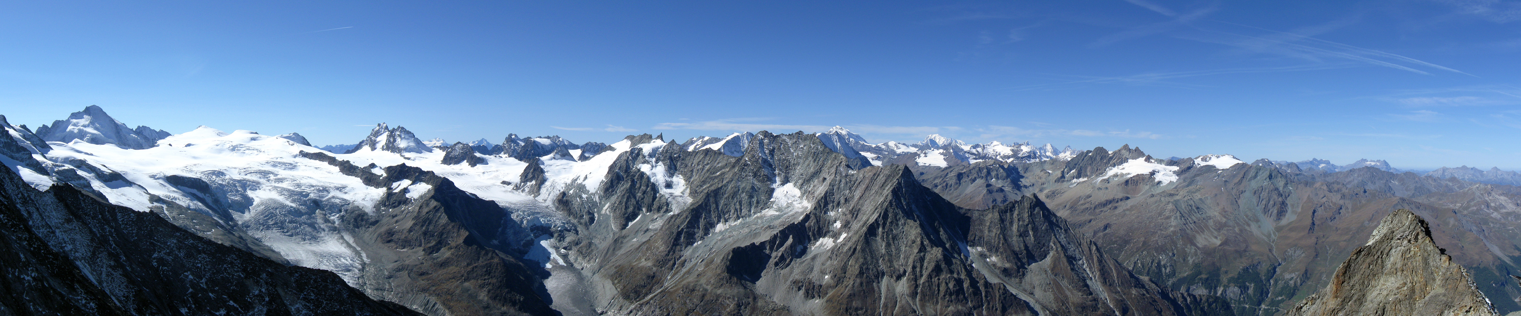 панорамы с Pointe de Mourti Вот что склеилось. Правда, ко второй панораме слева надо будет попробовать еще Dent Blanche приклеить. Картинки кликабельны (панорамы по 1.5Мб каждая).  |