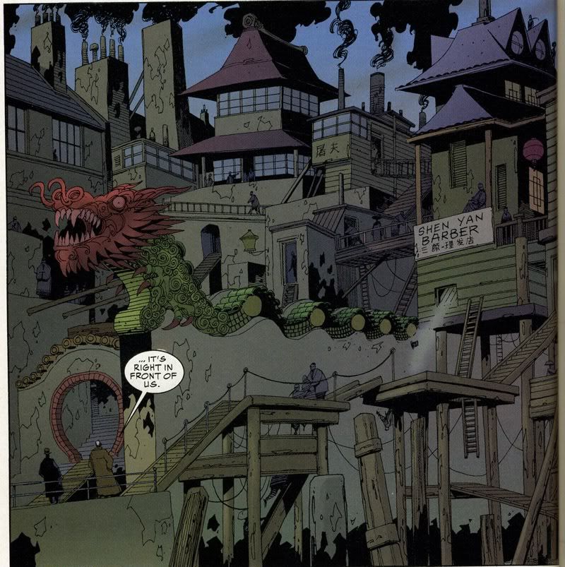 А Чайнатауном управляет Дьявольский Доктор, один в один списанный с доктора Фу Манчу за авторством Сакса Ромера (крайне популярная серия палпфикшенов начала 20 века, впоследствии часто экранизировались, в т.ч. с Кристофером Ли)