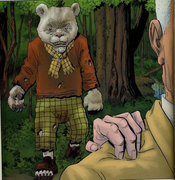 Для начала, стоит заметить, что лейтмотив графической части произведения (так же как смайл в Watchmenах) – знак вопроса. Не буду вам показывать где, как и что – ищите и, что называется, обрящете.