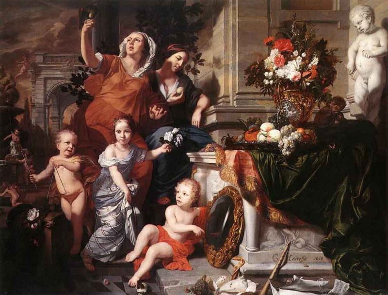 https://artchive.ru/res/media/img/ox800/work/d1e/126757.jpg на заднем плане взрослые вкус и обоняние, зрение и слух почти младенца, а осязание девочка-подросток. Можно даже взбреднуть что в XVII имели научное представление о процессе эволюции :-) Нет, просто значение перцепции так социально актуализировалась в барочные времена.