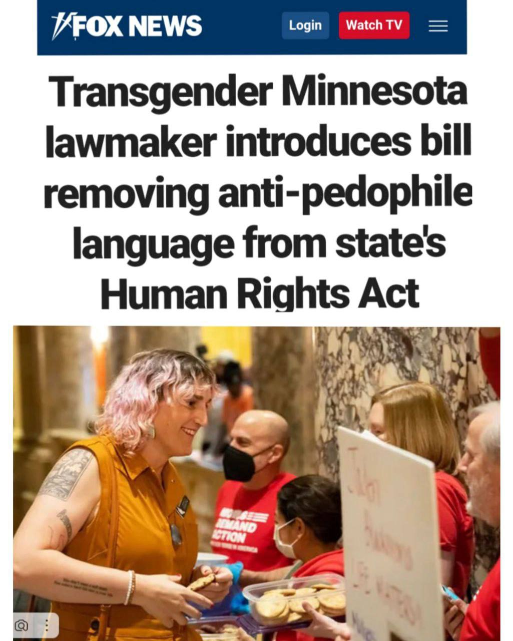 Депутат-трансгендер от штата Миннесота предложил признать педофилов людьми с "нетрадиционной ориентацией" и защитить их от дискриминации, сообщает Fox News.