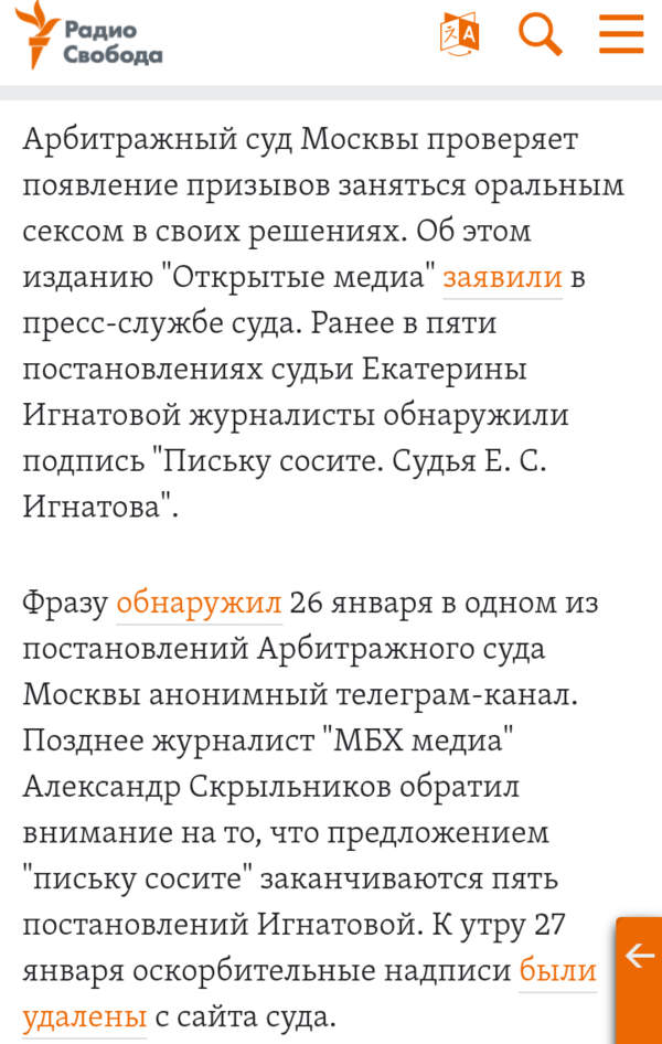 Суд в Москве проверит причины возникновения призывов к фелляции в своих решениях