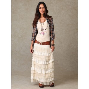 9. Конечно, этот вариант - самый изящный, но он же - и самый недостижимый, ибо юбка там явно не простая. У меня такой нету и не предвидится. 10. Самый мне близкий ансамбль. Обычная маечка, косыночка, деревянные браслеты - хоть щас так оденусь, только без шпилек, конечно. 11. Снова у меня ощущение, что я, собственно, так и хожу всю жизнь. Только вместо косухи - джинсовка. 12. А вот это мне нравится! И расхристанно и одновременно изячно. Вот так хочу ходить! Только есть у меня подозрения, что в моем исполнении изящество неминуемо испарится, останется одна расхристанность. Ну и ремень на бедрах смущает. Ох, не на моих бёдрах носить ремни. Забыла, зачем я всё это написала? А! Чтобы ближе к лету вдохновляться на ношение длинных юбок, во. |