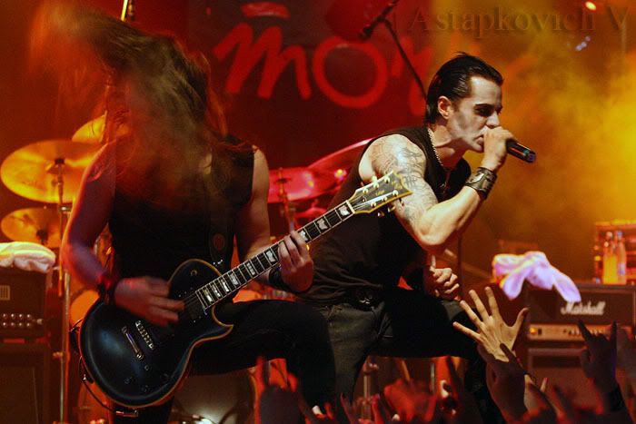 В общем я знал, на что шел. Тем более, что мои знакомые, бывшие на прошлом концерте предупредили меня, что основная программа будет состоять из песен с "Now Diabolical" и "Volcano". Так что никакого разочарования не было, скажу даже, что получил удовольствие от прослушивания этого далеко уже не трушного блэка, впервые с тех пор, как услышал эти последние альбомы. "Now Diabolical" и "The Pentgram Burns", с которых началось шоу  звучали вполне драйвово, несмотря даже на привычную уже косолапость звукача. Я бы не сказал, что Satyricon, который я увидел был хуже или лучше прежнего, это был просто немного другой Satyricon, и глупо было бы их противопоставлять друг другу. Сатир тоже изменил имидж и с новой прической и раскраской лица он похож на эдакого Пьеро из ада выглядит вполне гармонично со новой программой коллектива.  Народ в зале неистовствовал под ураган , изрыгаемый со сцены, стейдж-дайверы один за другим лезли к музыкантам и выбрасывались обратно охраной, один выскочил на сцену и в порыве чувств расцеловал Сатира, котрый весь концерт бегал по сцене туда-сюда, то спасаясь от невменяемых от угара фанатов, то наклоняя над толпой микрофон, словно удочку, дабы восторженная публика могла проскандировать слова припевов любимых песен. Микрофонная стойка, используемая Сатиром, достойна отдельного упоминания- этакая адская коряга, похожая на посох древнего колдуна, переплетение корней и ветвей.