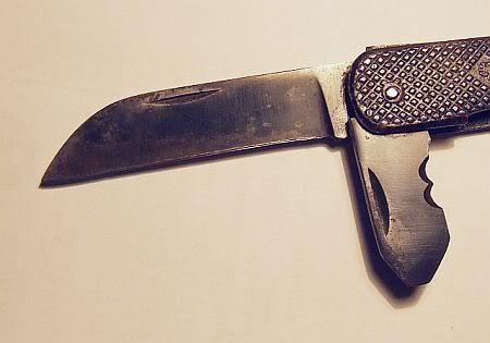 (доверительно) Этот грубого вида уродец , как ни странно, стал для меня довольно приятным сюрпризом. Это - советский нож сапёра из сумки взрывника. Собственно, он очень похож на банальный советский же нож электрика (основное лезвие - "овечье копыто", вспомогательное - отвёртка с выемками для зачистки проводов), но имеет несколько отличий. Щёчки рукояти у него не пластиковые, а стальные. Покрытие - воронение, в том числе и на складных клинках. Ну и, наконец, у него есть шило, которым по инструкции следовало прокалывать оболочку зарядов ВВ и создавать в оных отверстия для КД. Никаких фиксаторов нет, сталь углеродистая, твёрдость, на мой взгляд около 56 по Рокуэллу. Изготовлен, скорее всего, в 70-80 годах. ![]() ![]() ![]() ![]() ![]() Вот такой, понимаешь, предмет эпохи... |