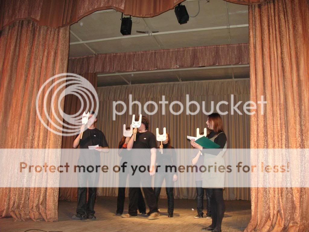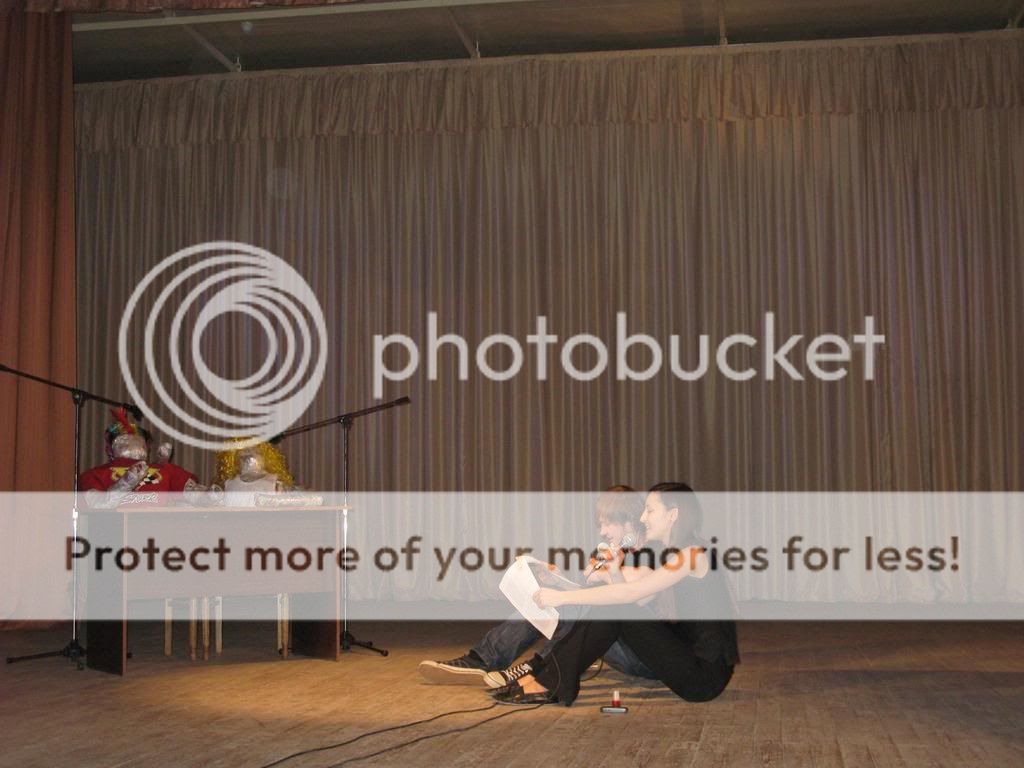 Уфимские читки -2010 Вчера в 3 актовом зале УГАТУ прошел первый день читок пьес современных уфимских авторов. Это были Михаил Погодин"Две градеробщицы " и "День сурка на радио мэднесс фм", Айдар Хусаинов с пьесами "Саломея" и "Без мужчин", Ирина Казакова с пьесой "Волшебная гусеница"и Рустам Нуриев с пьесой и китайцах. Читки всех пьес, кроме нуриевской и погидинских, поставил Илья Носоченко. Нуриевская пьеса по сути была практически полноценным спектаклем- его сделала сама Катя Славна Темнова, режиссер МТМ имени меня. Вот некоторые фото:  Это актриса Национального молодежного театра Полина Шабаева, она представляла отрывок из "Саломеи".  Актеры студии "Подмастерье" представляют "Волшебную гусеницу" Ирины Казаковой.  Актеры МТМ имени меня представляют пьесу Михаила Погодина "День сурка на радио мэднесс фм". Сравнивая читку, которую мы провели зимой 2008 с нынешней, я сразу же обратил внимание, насколько шагнула вперед режиссура. Если в первый раз это и вправду были просто читки- актеры расселись за столом и читали по ролям, держа в руках листы со своими ролями, то на этот раз и сами тексты претерпели трансформацию- их где-то порезали, где-то перемешали, и актеры больше играли, отталкиваясь от замысла режиссера. Две-три детали, и пьеса как живая сама собой бежит по сцене. В "Дне сурка " Михаила Погодина это стали две "гла-а-а-мурные" куклы за микрофонами, изображающие дикторов, которые несут пургу в эфир. В моей пьесе "Без мужчин" это стали модные стулья, на которые были наброшены то шаль, то платок героинь. В "Волшебной гусенице" Ирины Казаковой- маски и листочки с репликами, которые по ходу дела раздавала главная героиня. Еще один плюс- пьесы показаны были не целиком, а кусками, зато их было много. В некоторые моменты это создавало эффект непонимания, что к чему.Но в целом пестрая картина не давала заскучать зрителям и, как сказал мне поэт Александр Залесов, на обычном спектакле ты все понимаешь, а впереди еще два часа. А здесь после момента понимания в скором времени тебя ждет новый кусок и новый момент непонимания. За один вечер можно увидеть целый калейдоскоп картин, испытать новые чувства и погрузиться в самые разные пласты жизни от реалистичного до фантасмагорического. Зрителей в этот раз было немного меньше. И если в ДК Авнгард мы могли каждого вытащить и просить что-то сказать, то здесь это было затруднительно. Но тем не менее после каждого показа человек пять высказывали свое мнение разной степени понимания и приятия, но никто не остался равнодушным. Еще один важный момент- к читкам издательством "Вагант" (директор Салават Вахитов) были выпущены тексты пьес в виде небольших книжек- брошюр. 19 экземпляров было приобретено зрителями. Они их, понятное дело, прочитают, покажут друзьям и проч. Важно, что таким образом осуществляется длительное последействие читок. Так что читки будут жить. Именно такое перемешивание людей, идей, смыслов, картин,музыки,движения создает точки дальнейшего роста новой жизни. |