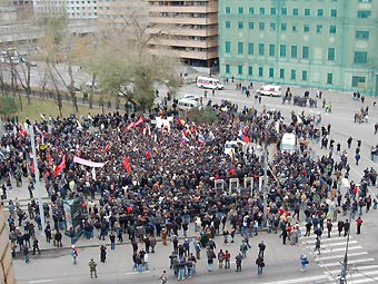 2. Публика, то есть собственно марширующие. Огромное количество молодёжи (это учитывая что бОльшую часть скинов повинтили) всякоразных взглядов, но все просто пропитаны агрессией к режиму. Порадавало большое количество девчонок в лонсдейлах и бурзумах выкрикивающих откровенно нациские лозунги. Как провещала безумная бабулька из "Марш Славянки": "Когда возопит русская женщина, тогда и путену конец". Ага, точно:)) Запомнились парни внушительных размеров сумевшие протащить и развернуть на митинге здоровенный чёрный банер с кельтами и надписью "Стрейт Эдж. Держи кровь чистой". Очень круто, молодцы. Вобщем перспектива у движения совершенно очевидна.