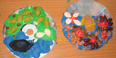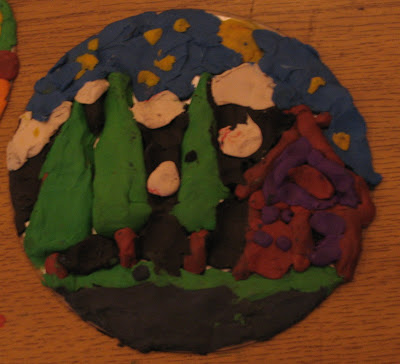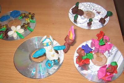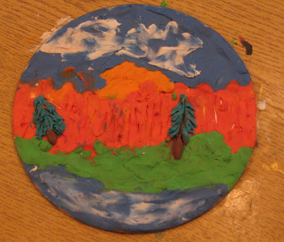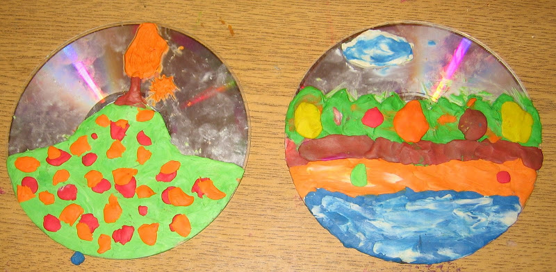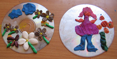 Цветы были разные, например, такие были и веточки с ягодами радужные цветы от племяшки Машки где девочки, там не обойтись без принцесс а где мальчики - там и мотоцикл кто-то наносил только орнамент, а другие делали толстый слой пластилина, заполняя им и небо, и землю, и лодку в реке Занятно, что идея лепить плоские фигурки не всем показалась удачной, и мне слепили торчащий вверх лес, девочку с мороженым, снеговика, вазы с цветами - в объемне, а не в плоскости А четвертый класс лепил вместе со мной осенние пейзажи, и вышли они совершенно разные: у одних темный лес и темное небо над избушкой, а у других - осенние деревья над речкой у кого-то одно осеннее дерево с золотой листвой, а у кого-то - целый лес а еще пластилин очень хорош для передачи движения: |