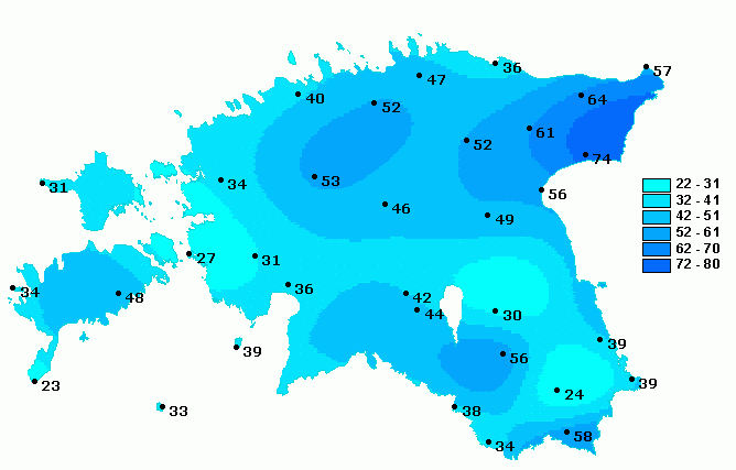 28.03.2010. - 36 и 57 см, в Выру и Тарту - 0