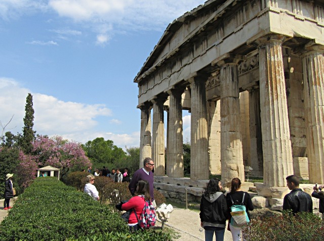 Агора Ареопаг закрыт на ремонт, а старая Агора оказалась отличным местом, тихо-зелено, без акропольских толп. По пути тоже какие-то развалины ![]() Вначале оно как-то так выглядит; вдали храм Гефеста, тоже ее часть, сохранился лучше, чем акропольские ![]() Зелено: растение примерно в человеческий рост ![]() А вот животное (тоже довольно крупное, панцирь сантиметров 35-40 в длину) ![]() Поднимаемся к храму Гефеста, садимся на какой-то камень осмотреться ![]() Вот собственно храм ![]() Интересующихся хватает, но с Акрополем не сравнить ![]() Городская часть - совсем идиллическая; видны контуры домов, среди них цветут деревья. Между прочим, табличка на камне гласит, что это была городская тюрьма. Тюрьма невелика. ![]() Местами совсем деревенское ощущение ![]() А вот я в цветочках ![]() Прямо по территории ходит метро - с краю, правда ![]() Вышли с агоры, пообедали, пошли гулять дальше; проходя какую-то очень торгово-сувенирную улицу, обнаружили, что чуть ли не во всех магазинах персонал говорит по-русски. Кто откуда с просторов бывшего СССР; местные выучившие тоже попадаются. Напоследок пара случайных фото: пальмы в городском парке ![]() И черепахи в фонтане (их больше, но трудно всех поймать в кадр) ![]() |