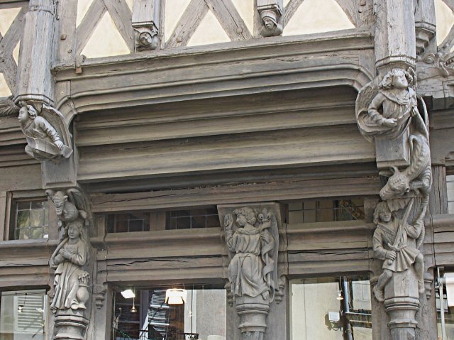 Дом Адама Дописываю вот это, про город Анже. Дом в центре Анже - весь в деревянных людях и зверях. ![]() фотографии вот здесь, года полтора назад; но людей и зверей на этом доме неисчерпаемо много, так что вот еще несколько: ![]() ![]() ![]() ![]() ![]() Есть еще очень неприличный мужичок - иллюстрация к частушке "Мимо тещиного дома..."; но он получился гораздо лучше в Володиной коллекции на ![]() А сам дом вот: ![]() |