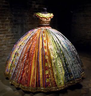 Платье для сказочной принцессы Угадайте, из чего платье сделано? Платье сделано из конфетных фантиков С 5 октября 2005 года посетителям галереи Д137 предстоит встреча с творчеством финской художницы Вирпи Весанен-Лаукканен, известной в Скандинавии, как мастера реализации тонких художественных материй, связанных с миром глубоких ощущений детства и скандинавскими традициями. Эти ощущения наполнены жизненным опытом, наблюдениями за окружающими людьми и природным миром, но от этого они оказываются не менее искренними и простодушными. Вирпи, по образованию мастер текстиля, всю жизнь изучает разные техники материала, преподает сама, придумывает новые технологии преподавания. Знание материала дает ей возможность в своей работе использовать многообразный спектр ассоциативных элементов,рождающих море воспоминаний, у каждого зрителя своих. Прогуливаясь по блошиным рынкам, Вирпи часто обнаруживает там вещи, которые затем пронзительно звучат в ее работах. К примеру, старые чулки. Вряд ли кого-то так привлекли бы эти простые чулки. Но Вирпи придумывает им историю. Черные чулки по скандинавской традиции носят разведенные женщины. Художница награждает их надписью «навсегда твоя», как будто они сами, как в сказке Андерсена, лелеют надежду обрести новую любовь. Вещный мир наполняет мастерскую Вирпи, которая находится буквально в центре Хельсинки на острове Харакка. Остров, находящийся в десяти минутах езды на лодке от самого престижного района города, в начале века использовался в качества лаборатории для химических экспериментов. Все здания, которые там сохранились, несут воспоминания об этом: мастерские в бывших лабораториях (в одной, например, душевая установка находится прямо над входной дверью), кухня в большой лаборатории, где теперь в центре стоит бильярдный стол с четырьмя шарами — все вызывает ощущение вневременья, легкого запустения и забытья. Там сохранилось все: от старых умывальников, крючков, защелок, до запаха ступеней и отблеска витражей в старинном добротном доме. Для нас невероятно, что этот заповедный остров был отдан художникам. И теперь кроме диких птиц уже около пятнадцати лет там живет девятнадцать художников, редко общаясь друг с другом, иногда не видясь месяцами. Недавно туда прилетели знаменитые австралийские большие утки с белой головой и круглым черным передником и развелись в невероятном количестве. Обычным людям туда вход закрыт, но Вирпи со своим мужем приходят на склон высокой скалы на свой очередной романтический завтрак в окружении птиц, скал, свежего ветра и прекрасного зрелища Балтийского моря вокруг с кораблями и близким городом. В такой атмосфере фантазии Вирпи не могут не вращаться вокруг мира сказок, с их иллюзорными мечтами и верой в добродетель, и она показывает хранящиеся в лаборатории Харакка полотенца, сделанные для военных во время войны. На них вышиты слова «любовь», «вера», «чистота», «тепло», «надежда», и Вирпи объясняет, что это вещи не просто служили, но спасали. Вирпи рассказывает, что самыми любимыми сказками ее детства были андерсеновские «Красные башмаки», «Русалочка» и «Девочка со спичками». Довольно странный выбор, если говорить о детских чувствах, но совсем не странный, если хотя бы немного знать финский менталитет. В первых двух сказках присутствует жестокое наказание з