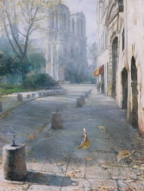 А она ж зеркально отображена.... Но Нотер Дам нет улочки с этой стороны, там же Сена... Или это просто волшебный несуществующий Париж) Но настроение передает очень тонкое...)