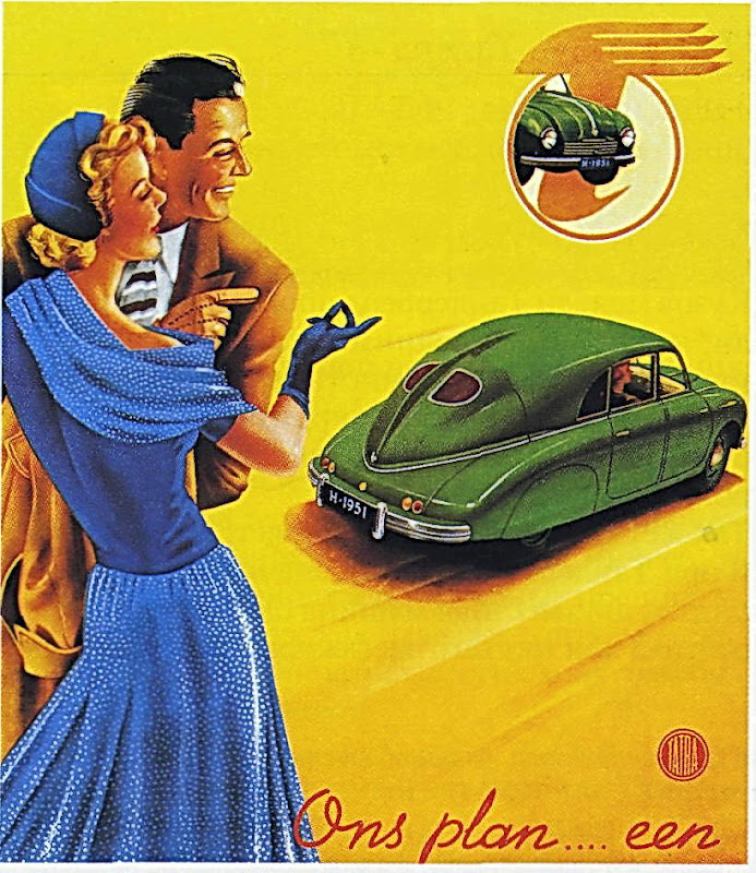 Автомобили "Татра" (история ранних моделей "Таtra") ![]() Модели "Татраплан" усиленно рекламировались. На плакате изображена счастливая пара, путешествующая на стильном автомобиле, сочетающем мощность, скорость и элегантность... Об истории автомобилей "Татра" - текст (+ много фотографий) - под "катом": Первые автомобили были изготовлены в 1897 году на вагоностроительном заводе в Несельдорфере. Модель была известна как "Президент" и имела двухцилиндровый двигатель «Бенц» мощностью 5 л. с. Последующие автомобили с четырехцилиндровыми силовыми агрегатами и верхними распределительными валами, которые конструировал Ганс Ледвинка, были вполне передовыми для 1906 года. Когда вслед за перемирием после Первой мировой войны были изменены границы, Несельдорфер, переставший быть частью Австрии, вошел в состав Чехословакии и был переименован в Копривинице. В 1923 году название автомобилей было изменено с "Несельдорфер" на "Татра". ![]() На фотографии - модель "Татра-603" (слева) возле модели "Татраплан". Вновь Ганс Ледвинка конструировал машины, которые вошли в историю автомобилестроения. Автомобили имели стальные шасси на трубчатой раме и оснащались двигателем с воздушным охлаждением, с оппозитным расположением цилиндров. В результате появлялись такие модели, как Тип-77 1934 года с превосходными обтекаемыми линиями кузова, оснащенные расположенным сзади двигателем V8 и с воздушным охлаждением. Эти автомобили явились основой более крупных послевоенных машин Татра. В 1945 году завод «Татра» стал контролироваться государством. Модель Татра-57В 1939 года вернулась на рынок с четырехцилиндровым двигателем с оппозитным расположением цилиндров, воздушным охлаждением, рабочим объемом 1256 куб.см и мощностью 25 л. с. ![]() На фотографии - модель Татра - 57В Вместе с этим компактным двухдверным автомобилем выпускался преемник более крупной модели Тип-77, носящий название Тип-87. ![]() Модель Татра-87... ![]() Вид сзади. Этот автомобиль приводился в движение расположенным сзади трехлитровым двигателем V8 с верхними распределительными валами воздушным охлаждением. Татра Тип-87 также выпускалась с четырехцилиндровым двигателем рабочим объемом 1749 см3. В 1947 году преемницей модели Тип-87 стала модель Татраплан-600. Эта машина предназначалась для экспорта. Четырехцилиндровый двигатель был более «простым», без верхнего распределительного вала - рабочим объемом 1950 см3 и мощностью только 52л. с. Затем, в 1956 году, для партийных руководителей СССР и соседних соцстран была запущена в производство Татра-603. Кузов был аналогичен предшествующим моделям, а сзади располагался двигатель V8 с воздушным охлаждением. Распределительный вал был в блоке цилиндров, а двухкамерные карбюраторы помогали двигателю рабочим объемом 2545 см3 развивать мощность до 100л. с. На фотографиях - модель "Татра" - 603 различных модификаций ![]() ![]() ![]() Подобно автомобилям, которые конструировал Ганс Ледвинка, все послевоенные модели компании «Татра» имели независимую подвеску всех колес. Модель 603 была первой с несущим кузовом. Три фары устанавливались за вставкой из прозрачной гибкой пластмассы. Эта модель выпускалась в течение двадцати лет, хотя, конечно, ее внешний вид время от времени изменялся. В 1961 году к трем фарам была добавлена четвертая, а после увеличения в 1962 году степени сжатия с 6,5:1 до 8,2:1 мощность двигателя возросла до 105