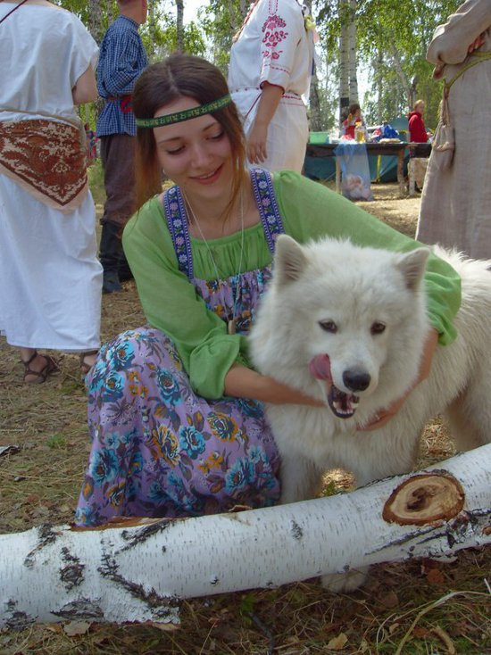 ...Одно из условий праздника - отказ от современной одежды. Надо быть в традиционном костюме. Заметил, что девушки в сарафанах привлекают внимание и тем, что нет одинаковых нарядов - видна душа, ведь одежда тут индивидуальна. Ещё важно, чтобы на всех, даже на девушках, был пояс - это оберег. Исконное значение слова «распоясавшийся» - «одержимый бесами». Девушка без пояса считалась колдуньей..."